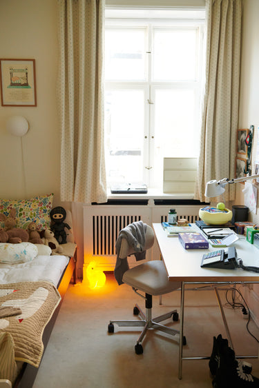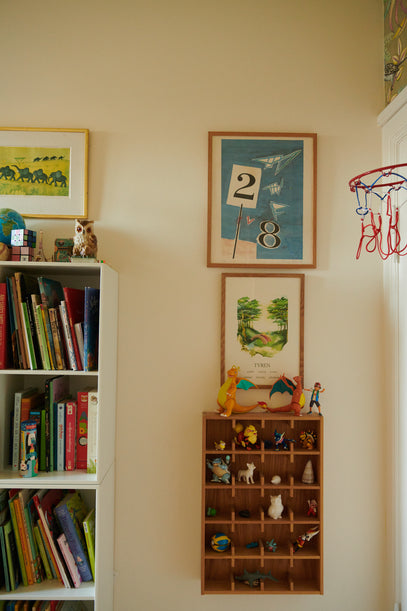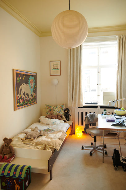 8-year-old Frank's room is full of colour yet feels calm once you enter his space. Shelves are filled with Frank's own creations, fun finds and lots and lots of books.