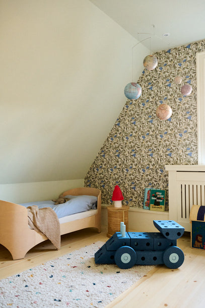 Starting with a strip of wallpaper, the transition began, turning Malte's space into a fun, creative and cosy room with a hidden nook, great storage options and space on the floor for active play.