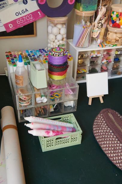 Olga loves to make beaded bracelets and necklaces. The bracelets here are created using the 'Bracelet Kit' from Creativ Company. A Bunny Bowl is used for storage.