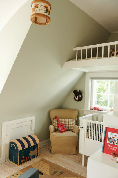 The vintage chair is used a night time once Valdemar is ready for bed. Here, he and his mom or dad will sit and read a book, sing a song and say goodnight before he is put down in his crib.