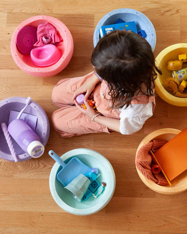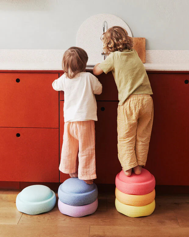 A set of 6 pastel coloured blocks that are fantastic for balancing, stacking, sitting and transporting.