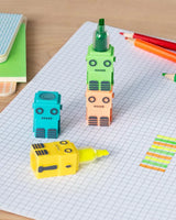 Funny little stackable robot highlighters. Featuring a playful design and vibrant colours, this set is perfect for getting organised while adding a cheerful touch to homework and revision.