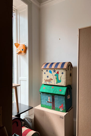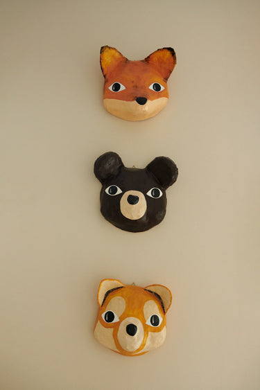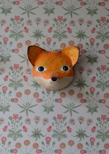 This beautiful mask made from papier-mâché is a fun way to add a bit of colour and charm to your baby's nursery or child's room. This one is Pedro, the Fox.
