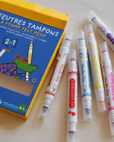 8 large felt-tip pens with two functions: a double-thickness tip on one side and a stamp on the other. They are perfect for bringing the most beautiful creations to life and decorating them with pretty patterns. These pens are washable.