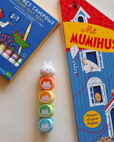 Moomintroll needs a string for his new kite – and he finds a red one that winds its way through the entire house. Help him follow it from the basement to the attic, lifting the flaps along the way to discover fun surprises and meet everyone who lives in the Moominhouse.