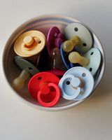 Matching our handmade pacifier clips, these 100% natural rubber latex pacifiers come in a variety of beautiful colours.
