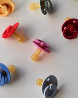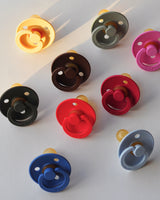 Matching our handmade pacifier clips, these 100% natural rubber latex pacifiers come in a variety of beautiful colours.