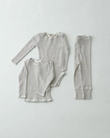 The Kishon Baby T-shirt is a soft 100% cotton, ribbed top with long sleeves in cream with navy blue stripes. The ribbed texture allows the fabric to stretch allowing for ease of fitting and wear. The ideal underlayer, t-shirt or elevated staple for days at home.