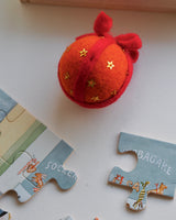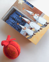 The ornament comes with a string and is ready to be hung on the tree. All Gamcha ornaments are handmade, and small variations in shape are expected.