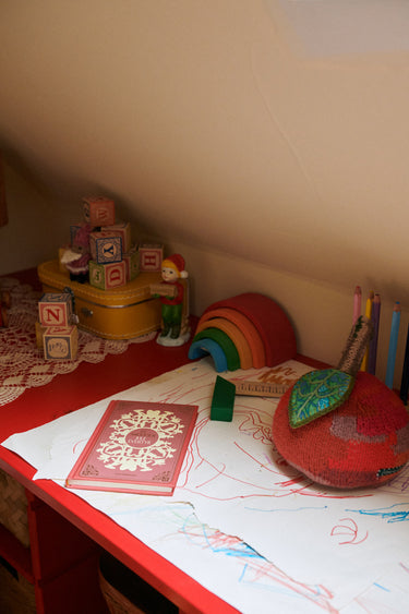 Made from soft, luxurious baby alpaca, this apple is a wonderful object and collectible for kids and adults alike. It's a fun, unusual and eye-catching piece for your child's bedroom, or as a decor object elsewhere in your home.