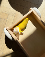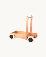 A push wagon is not just an assisted walking piece, it is also a fun toy: Place your favourite teddy in the wagon and you're ready to take him or her for a ride around the dinner table.
