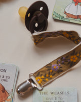 Crafted from the most beautiful vintage fabrics and each made by hand, these lovely pacifier clips come in five beautiful prints. Use the clip to attach the strap and pacifier somewhere on your baby's clothing for easy reach.