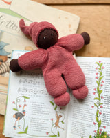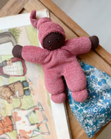 A lovely and incredibly soft little Pimpel Doll from Nanchen in a warm berry colour.
