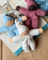 Nanchen dolls are always handmade, and always made from 100% organic materials. The Pimpel Doll is made from 100% organic cotton, and is safe for baby to chew on.