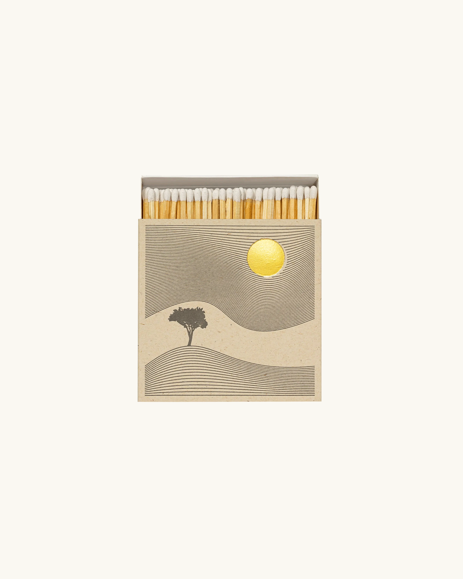 Square matchbox filled with 125 matchsticks ready to spark a little joy. Designed to add character to coffee tables or mantelpieces.