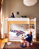 The Perch Bunk Bed is built from solid birch and Baltic birch plywood, and has a sturdy frame and solid rails on top.