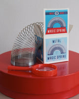 It features a metal spring which can walk down the stairs, when placed on the top stair and then given a gentle push.