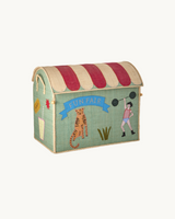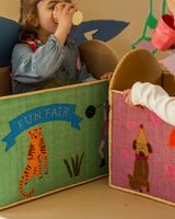 The Raffia Fun Fair Basket is a lovely, embroidered, handmade and practical storage basket.