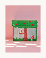 Pretty colours, a practical lid (the roof of the house), and wonderful, embroidered details make this storage basket suitable to place anywhere in the house.