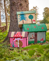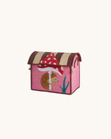 Pretty colours, a practical lid (the roof of the house), and wonderful, embroidered details make this storage basket suitable to place anywhere in the house.