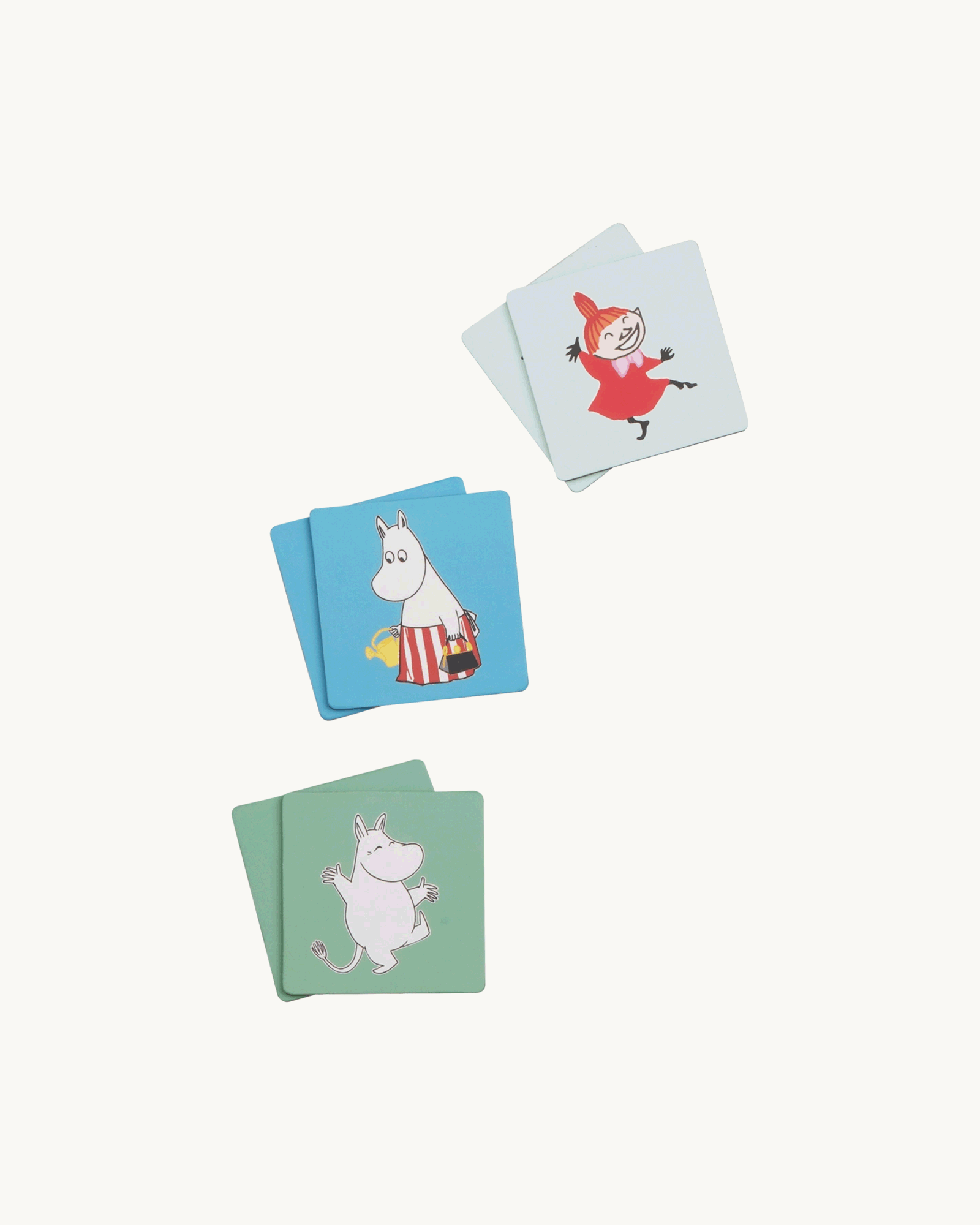 The game includes 36 pieces – 18 matching pairs – featuring beautiful illustrations from the Moomin universe. It comes in a charming box shaped like the Moomin house, which also looks delightful on display in the children’s room.