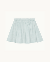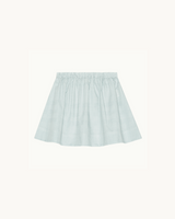A lovely, knee-length skirt in a delicate checkered blue print.
