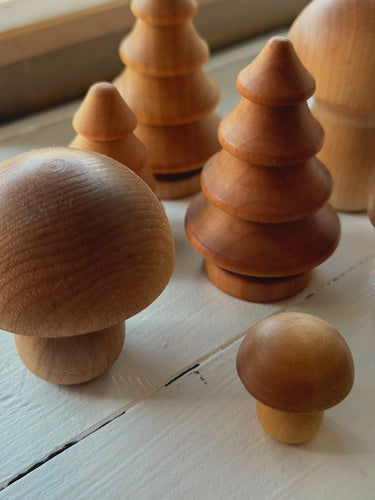 A lovely set of four wooden mushrooms and three trees – perfect for play or as small decorative elements in the children’s room.