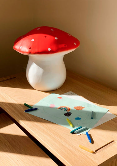 The large Mushroom Lamp from Heico is a lovely, decorative and humorous lamp for your kid’s room or baby's nursery. It instantly adds charm and a bit of colour, while also spreading light up and around from where it is placed.