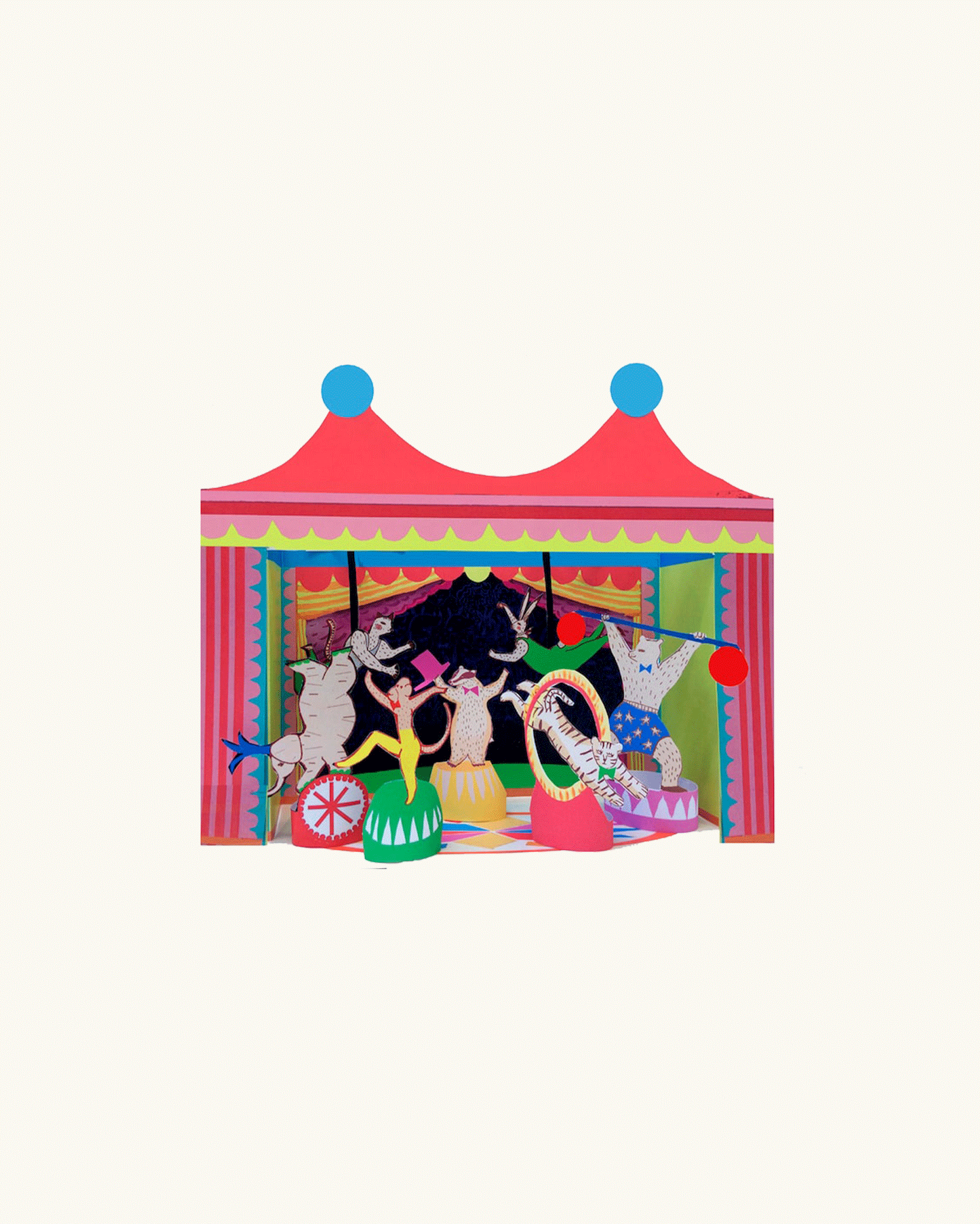 A charming and colourful circus, ready to cut and make together – a parent and child activity that takes about 45 minutes to assemble.