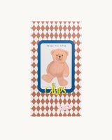 The teddy bear comes in a box that may be decorated as Gus' own little bed – or used as storage for other things.