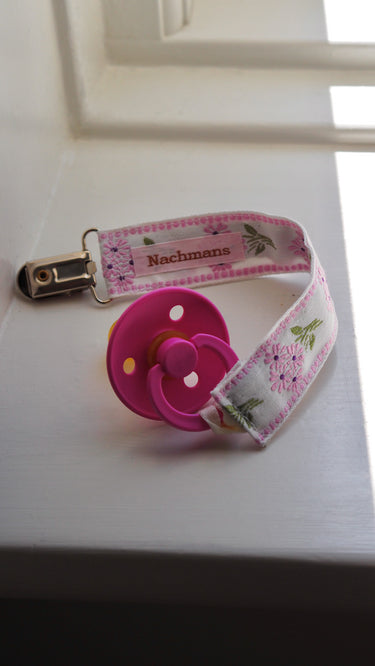 These beautiful, handmade pacifier clips, made from vintage folklore fabric, keep the pacifier right where you want it: Close to baby and away from the floor.
