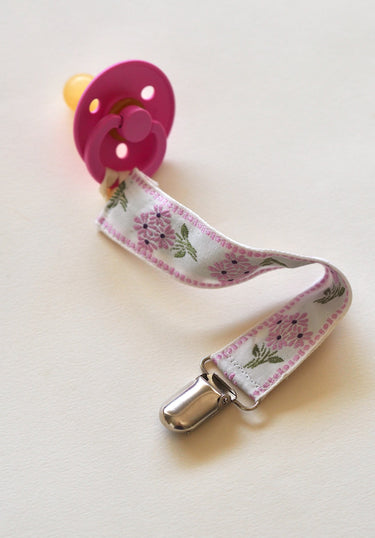 Crafted from the most beautiful vintage fabrics and each made by hand, these lovely pacifier clips come in five beautiful prints. Use the clip to attach the strap and pacifier somewhere on your baby's clothing for easy reach.