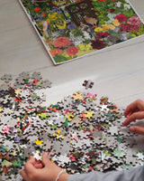 Beautiful 1000-piece puzzle. Experience fresh Nordic air in a lush garden by a Swedish summer house — full of vibrant colors and detail. Includes a color poster and a playlist by the artist. Scan the QR code on the box to listen. Illustrated by Cecilia Pettersson. Made from recycled paper and printed with vegetable-based ink. Recommended from age 10 and over. Dimensions: Puzzle: Length 50 cm x width 50 cm. Box: Length 25,5 cm x width 25,5 cm x height 5 cm.