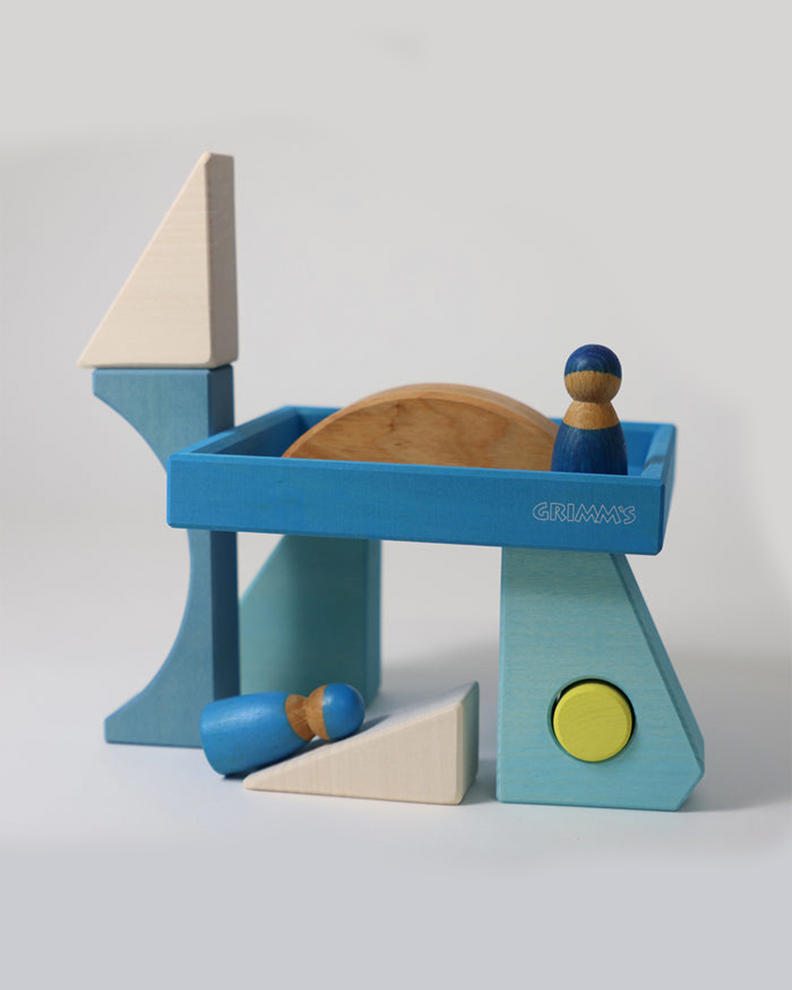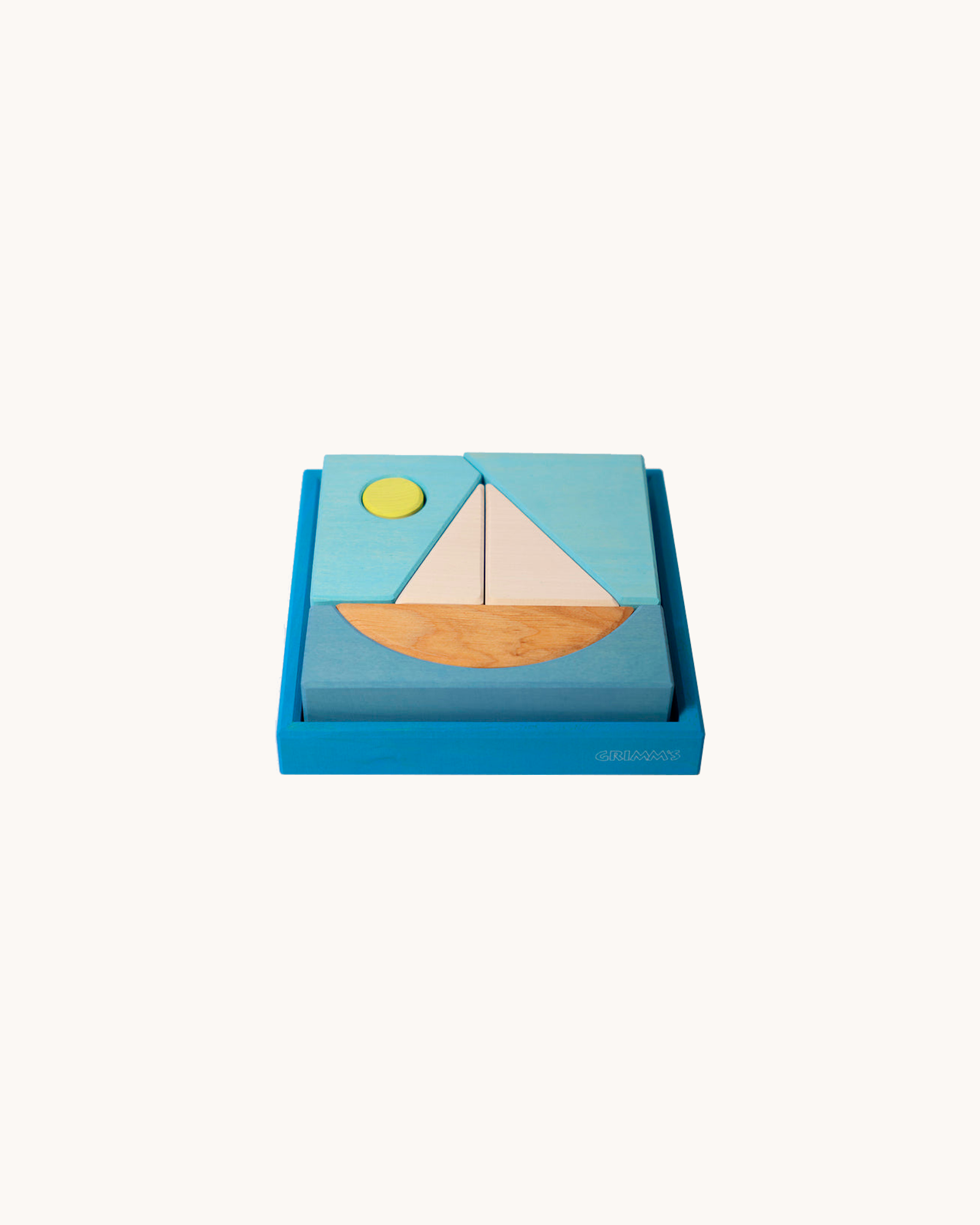 A beautiful building set/puzzle in shades of blue from German brand Grimm's. This set may be used both as a puzzle and as a building set with endless possibilities.