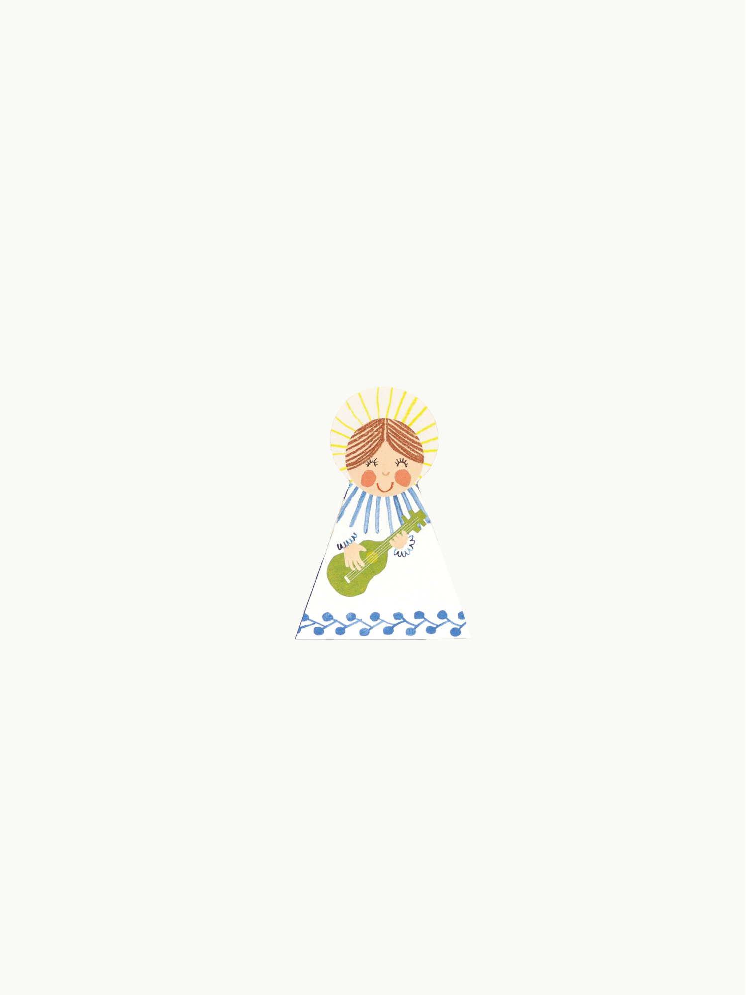Wish someone you love a merry Christmas with this lovely fold-out card – or fold it and use as Christmas decor in your own home: This is a sweet choir angel card iwith fold-out wings so it stands beautifully on display.