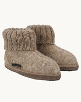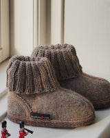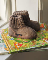 The Wool Shoe is a wonderful indoor shoe that comes with a sock-like top, that keeps your child warm and comfortable. The "sock" ensures that the shoe stays on the foot, but it is fully bendable and flexible and with no hard edges that may rub into the lower ankle as your child bends or sits downs.