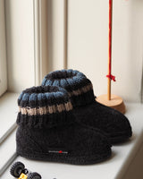 The Wool Shoe is a wonderful indoor shoe that comes with a sock-like top, that keeps your child warm and comfortable. The "sock" ensures that the shoe stays on the foot, but it is fully bendable and flexible and with no hard edges that may rub into the lower ankle as your child bends or sits downs.