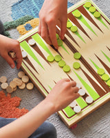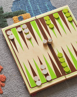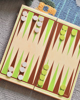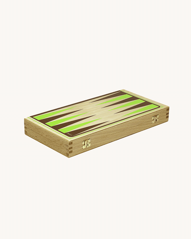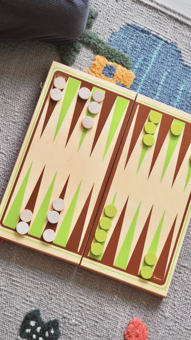A classic Backgammon game in a beautiful wooden suitcase, made by the French brand Jeujura. The suitcase makes it easy to take the game on the go and keeps all the pieces neatly stored when not in use.