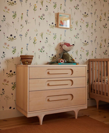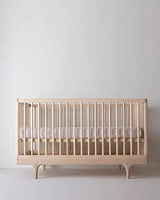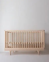 The crib converts as is into two different toddler bed styles: a 3-walled toddler bed or a platform-style toddler bed that can be used as seating well beyond the nursery years. It can also be converted to a beutiful junior bed with the Caravan Conversion Kit, also available in raw or oiled ash.