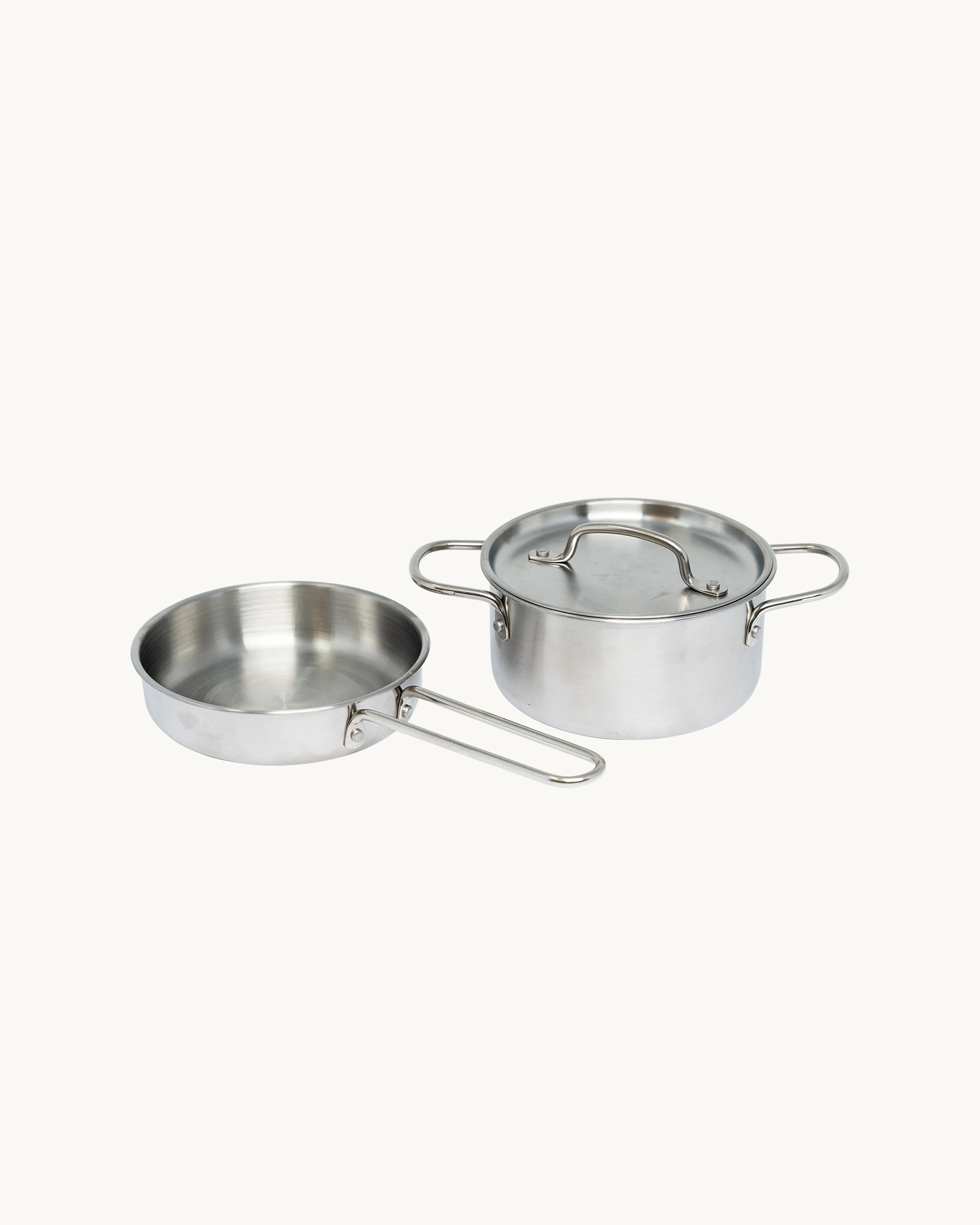 This set features a sturdy pot with lid and pan made from durable stainless steel.
