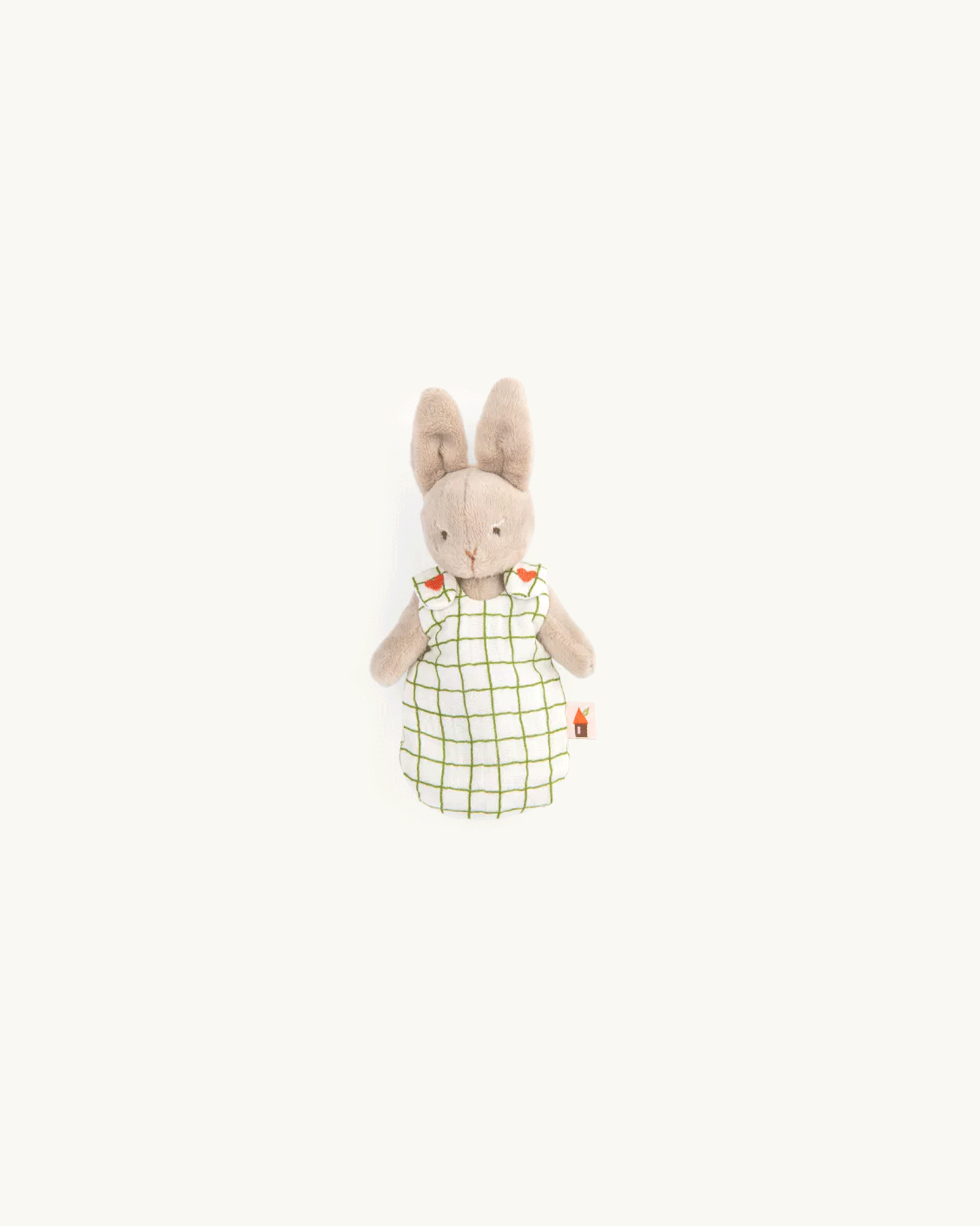 The bunny comes in a box designed like a vintage matchbox, that can be opened and closed. The duck can be tucked in its small sleeping bag at nighttime or when it's time for a nap.
