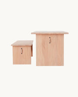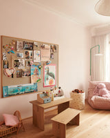 The bench is produced in Europe and made from 100% solid oak. It may be used just as is, either in the kid's room or elsewhere in your home – think places your child would like to sit: The kitchen, the hallway, the living room – or pair it with the Arca table, for a full set for kids to play, draw and be creative.