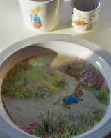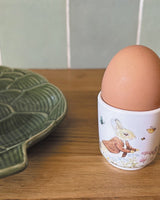 The egg cup is decorated with lovely illustrations of Peter the Rabbit.