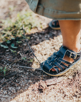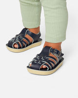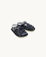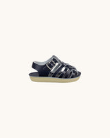 The perfect summer sandal for little explorers. This is Sailor, a closed toe sandal for babies, here in dark blue navy colour.