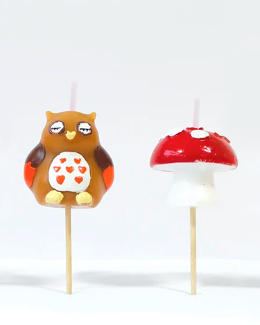One set includes 5 candles, including a deer, a fox, a mushroom, a squirrel and an owl.