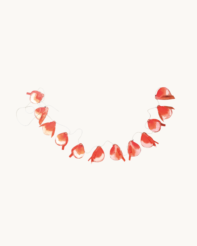 A wonderful garland with 12 sweet robins on a two-meter-long string.
